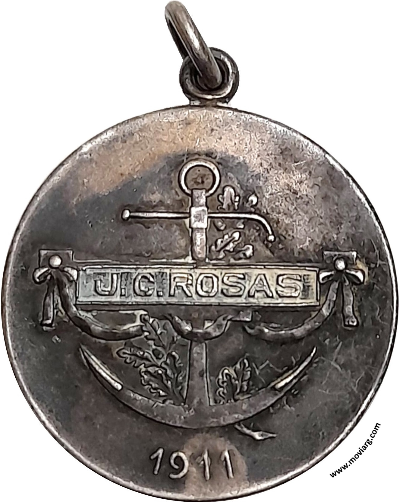 Anverso: ESCUELA NAVAL MILITAR. Firma: CONSTANTE ROSSI Reverso: [ J. C. ROSAS ] / 1911 Canto: Liso. PLATA Referencia: | |