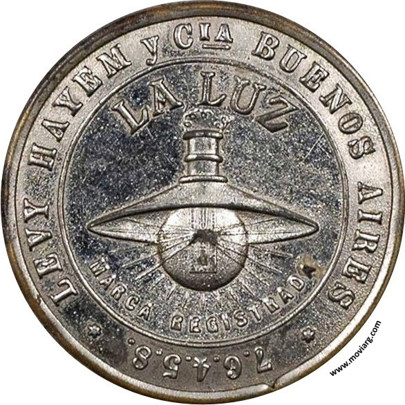 iNumis Anverso: EXPOSITION UNIVERSELLE DE PARIS 1900Reverso: LEVY HAYEM Y CIA. BUENOS AIRES / 7.6.4.5.8. / LA LUZ / MARCA REGISTRADA Referencia: | |