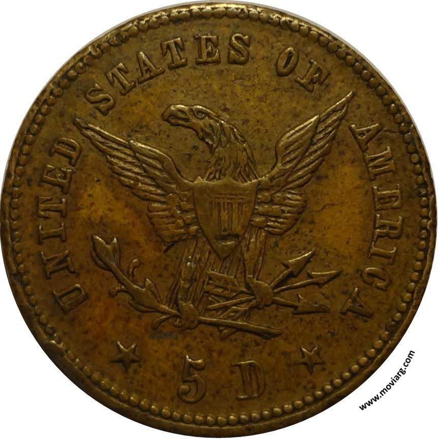 Anverso: UN ARGENTINO. 9 DOS. FINO. LIBERTAD. 5 PESOS Reverso: UNITED STATES OF AMERICA / 5D Canto: Estriado recto Referencia: | |