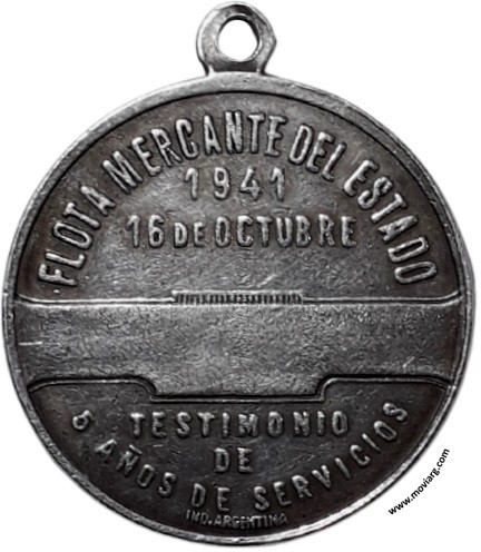 Colección MDS Anverso: Firma: PISANI. Exergo: [ 900 ]Reverso: FLOTA MERCANTE DEL ESTADO / 1941 / 16 DE OCTUBRE / TESTIMONIO / DE / 5 AÑOS DE SERVICIOS. Firma: IND. ARGENTINA Referencia: | |