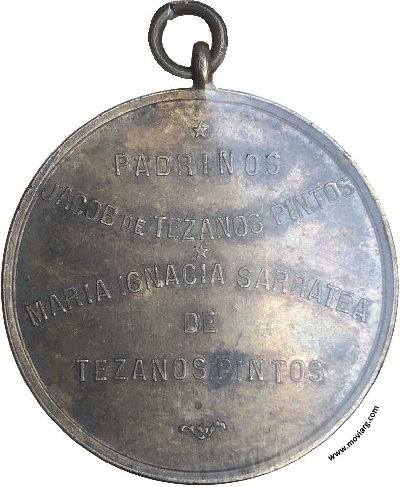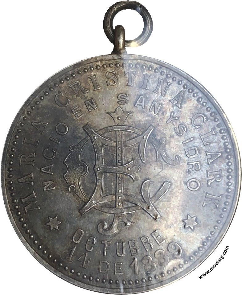 Anverso: MARIA CRISTINA CLARK / NACIO EN SAN YSIDRO / OCTUBRE / 14 DE 1889 Reverso: PADRINOS / JACOB DE TEZANOS PINTOS / MARIA IGNACIA SARRATEA / DE / TEZANOS PINTOS Referencia: | |