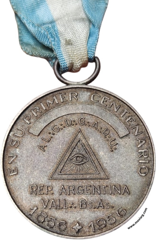 Anverso: AUG .·. LOG .·. CONFRATERNIDAD ARGENTINA. Campo: G Reverso: EN SU PRIMER CENTENARIO / AL .·. G .·. D .·. G .·. A .·. D .·. U / REP. ARGENTINA / VALL .·. BS. AS. / 1856 - 1956 Referencia: | |