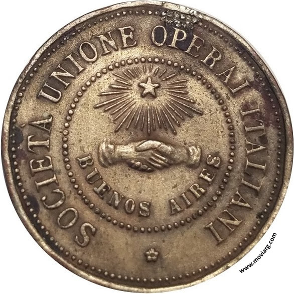 Anverso: SOCIETÀ UNIONE OPERAI ITALIANI / BUENOS AIRES Reverso: SCUOLE FEMMINILI GRATUITE / PREMIO Referencia: | |