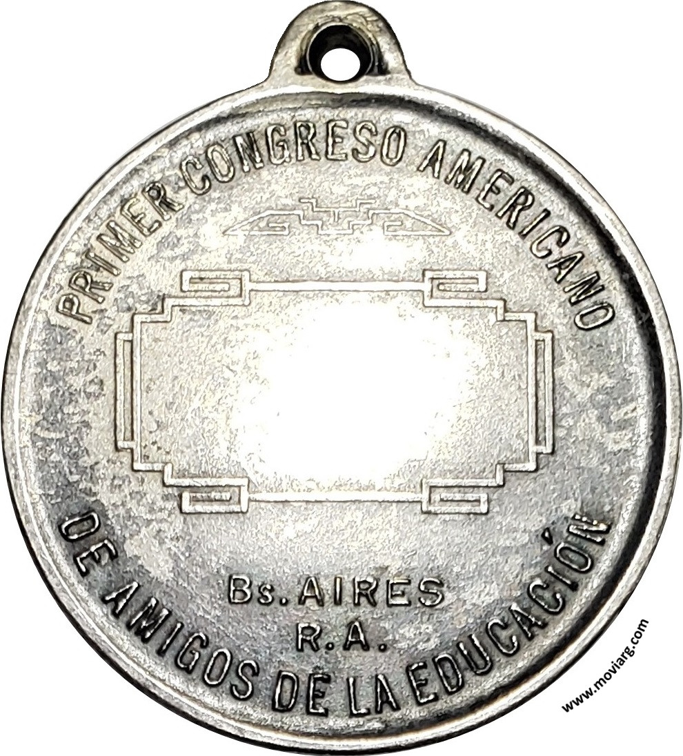 Anverso: DOMINGO FAUSTINO SARMIENTO / 1811 - 1888 - 1938. Firma: LUIS PERLOTTI / B. AIRES / 1938 Reverso: PRIMER CONGRESO AMERICANO / DE AMIGOS DE LA EDUCACIÓN / BS. AIRES / R.A. Referencia: | |