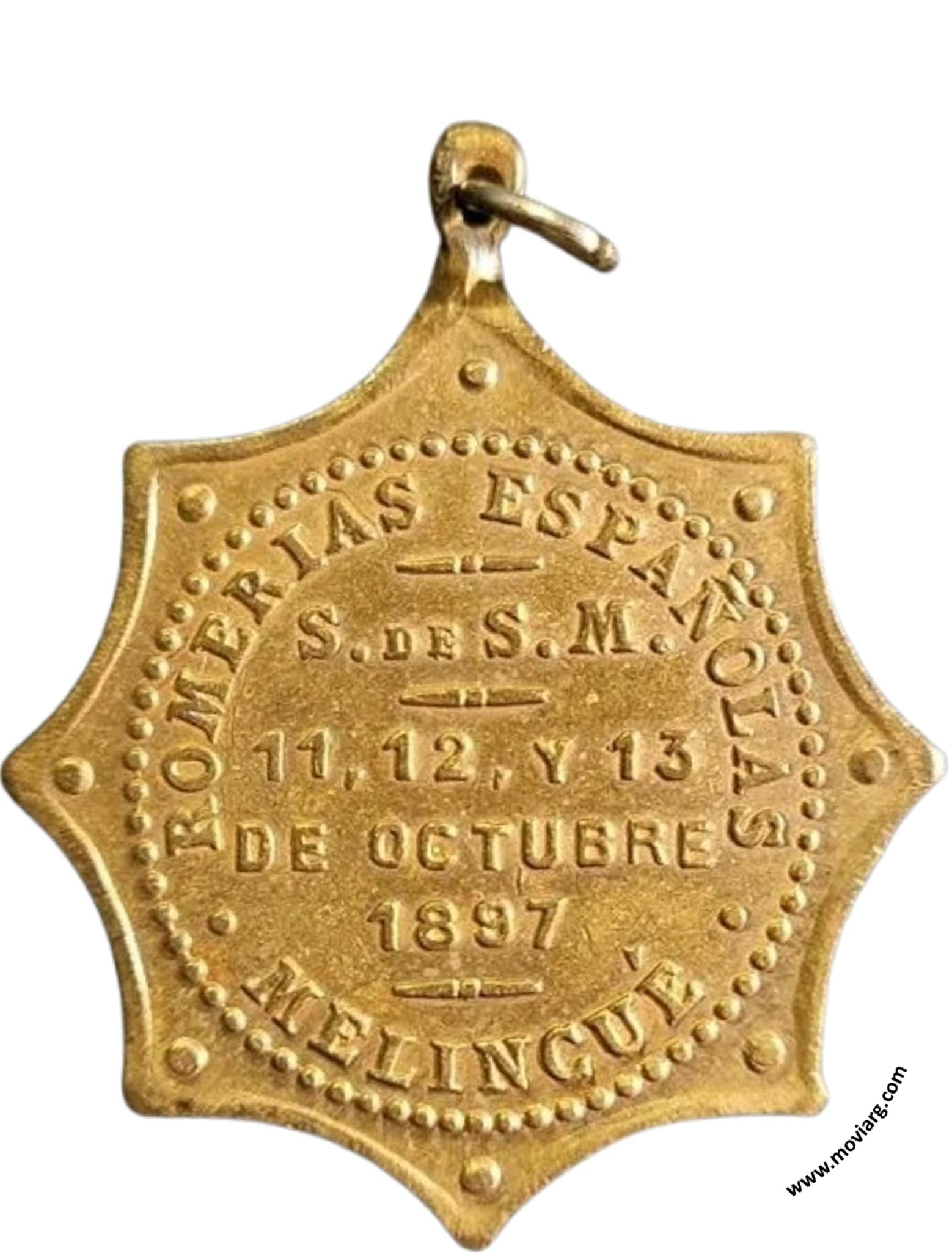 Anverso: Reverso: ROMERIAS ESPAÑOLAS / S. DE S. M. / 11, 12, Y 13 / DE OCTUBRE / 1897 / MELINCUÉ Referencia: | |