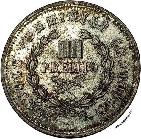 | Año: (1888) Premio al Mérito y Aplicación Metal: Plateado - Peso: 14.35gr - Módulo: 33.07mm - Espesor: 2.25mm - Rotación: 12hrs Grabador: Fabricio Zuccotti | |