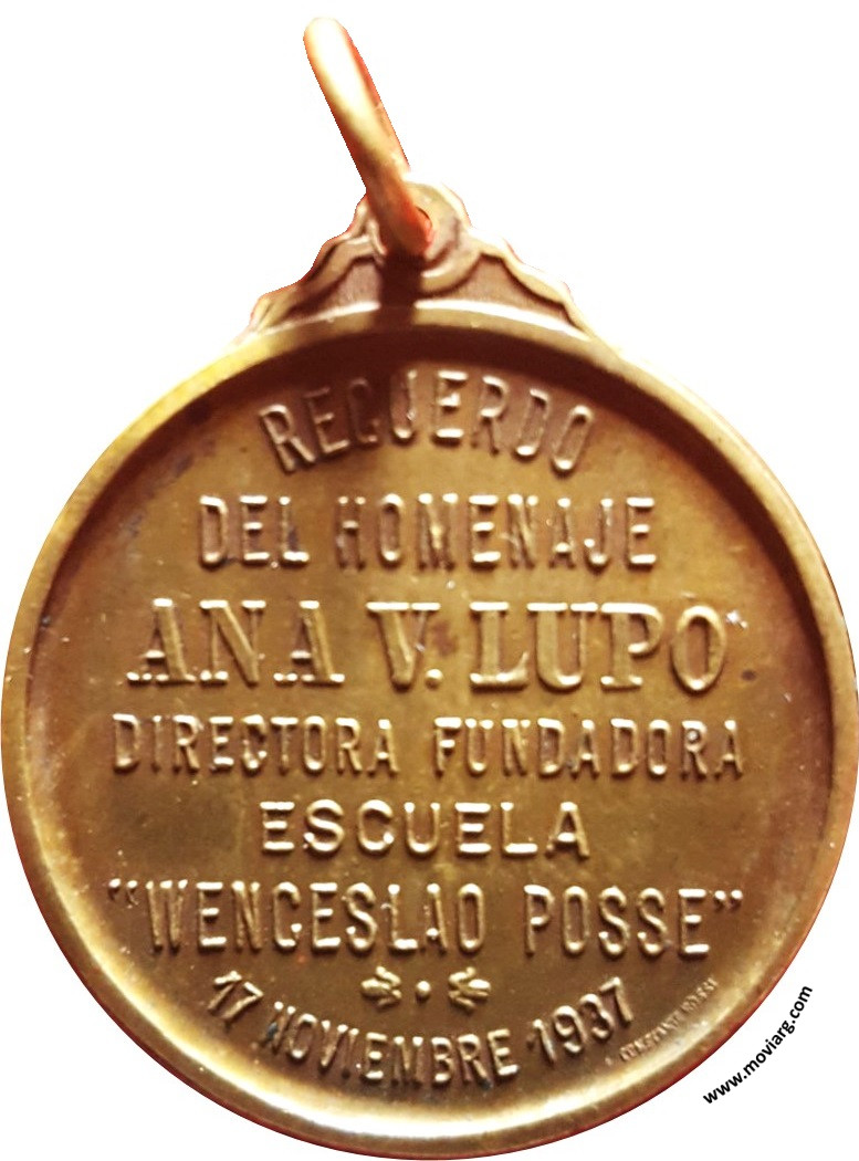 Anverso: Firma: L. PERLOTTI Reverso: RECUERDO / DEL HOMENAJE / ANA V. LUPO / DIRECTORA FUNDADORA / ESCUELA / “ WENCESLAO POSSE " / 17 NOVIEMBRE 1937. Firma: CONSTANTE ROSSI Referencia: | |