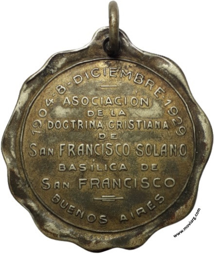 Colección MDS Anverso: Firma: HORTAReverso: 1904 - 8 - DICIEMBRE - 1929 / ASOCIACIÓN / DE LA / DOCTRINA CRISTIANA / DE / SAN FRANCISCO SOLANO / BASÍLICA DE / SAN FRANCISCO / BUENOS AIRES Referencia: | |