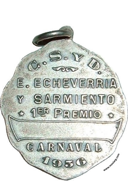 facebook - Archivo de Carnaval Anverso:Reverso: C. S. Y D. / E. ECHEVERRIA / Y SARMIENTO / 1ER. PREMIO / CARNAVAL / 1936 Referencia: | |