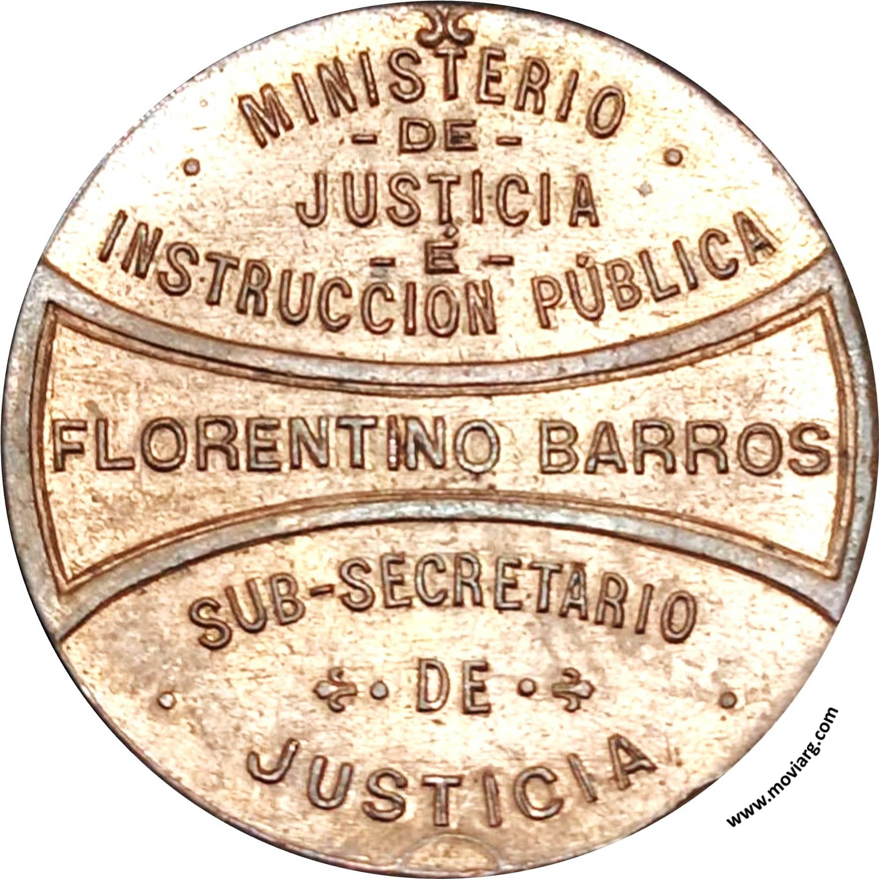 Anverso: REPÚBLICA ARGENTINA. Firma: BELLAGAMBA Y ROSSI Reverso: MINISTERIO / DE / JUSTICIA / É / INSTRUCCION PÚBLICA / FLORENTINO BARROS / SUB - SECRETARIO / DE / JUSTICIA Referencia: | |