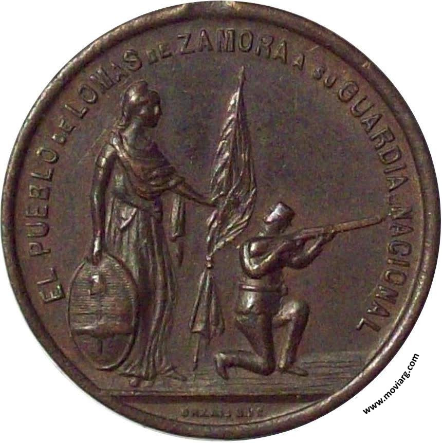 Anverso: EL PUEBLO DE LOMAS DE ZAMORA A SU GUARDIA NACIONAL. Firma: ORZALI B. Y C. Reverso: RECUERDO / DE / LA BENDICION / Y JURA DE LA / BANDERA / DEL BATALLON / LOMAS DE ZAMORA / 10 DE JULIO / 1898 Referencia: | |