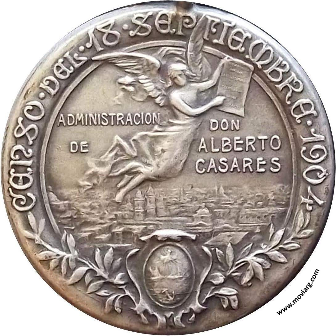 Anverso: CENSO DEL 18 SEPTIEMBRE 1904 / ADMINISTRACION / DE / DON / ALBERTO / CASARES Reverso: LA MUNICIPALIDAD DE LA CAPITAL / AGRADECIDA / Á / POR LOS SERVICIOS / PRESTADOS / EN EL / EMPADRONAMIENTO GENERAL Referencia: | |
