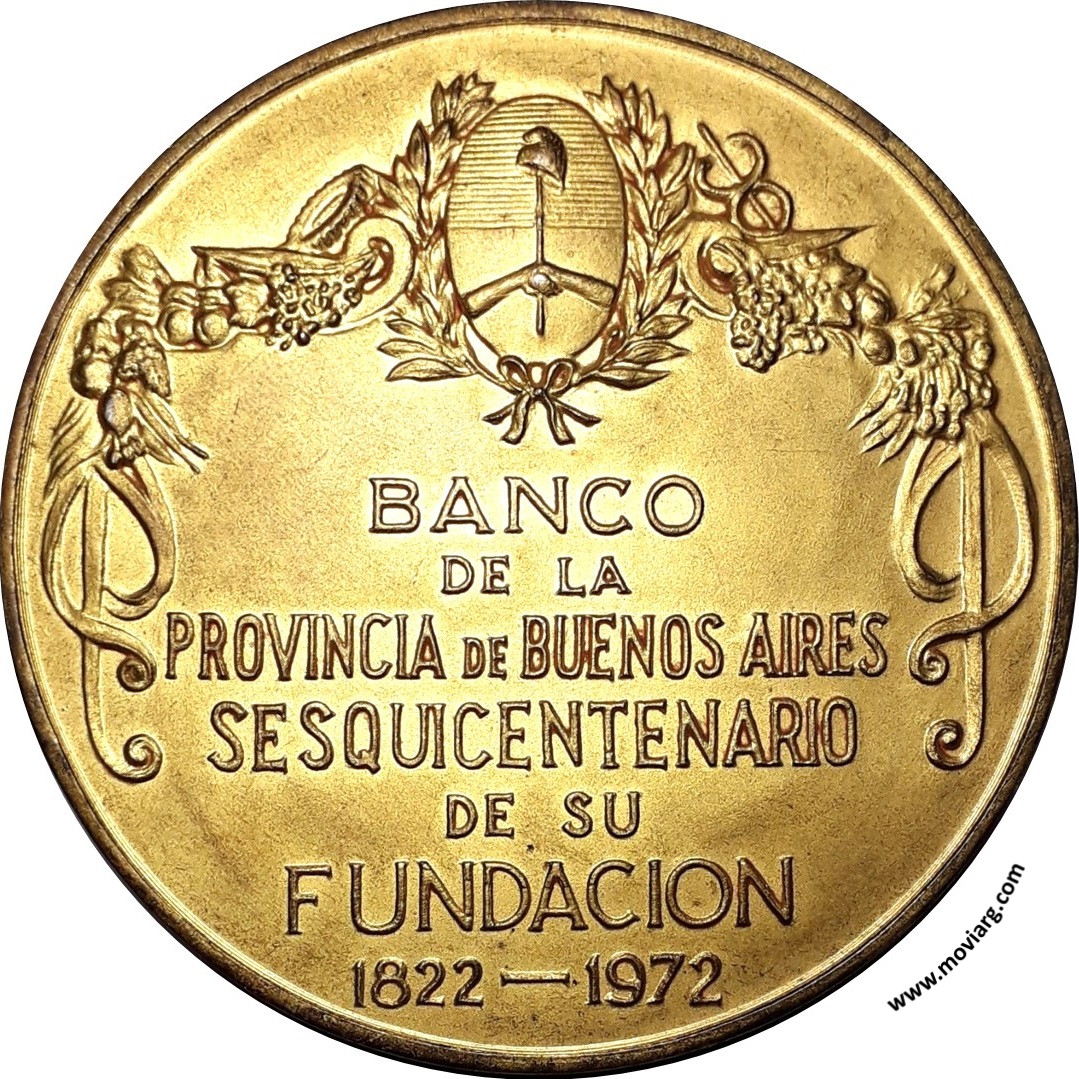 Colección MDS Anverso:Reverso: BANCO / DE LA / PROVINCIA DE BUENOS AIRES / SESQUICENTENARIO / DE SU / FUNDACION / 1822 - 1972 Referencia: | |
