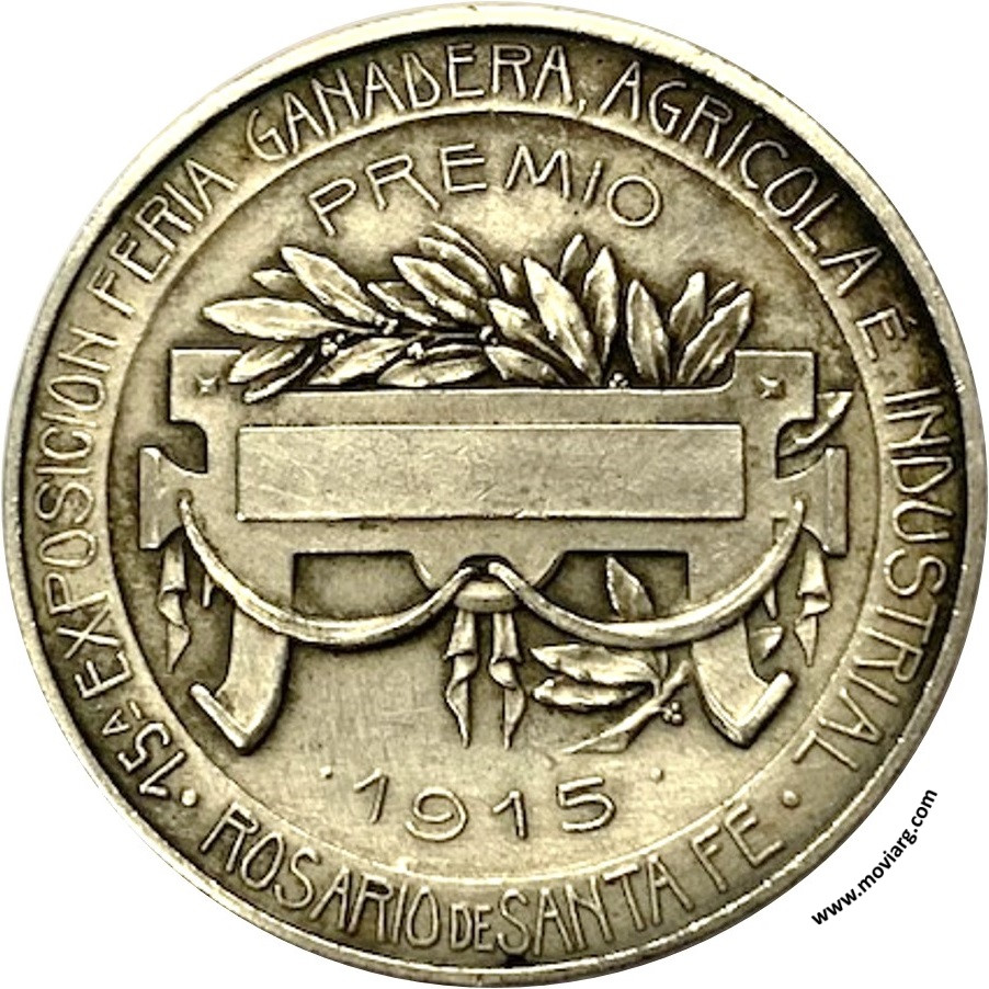 Anverso: SOCIEDAD RURAL DEL ROSARIO. Firma: CONST. ROSSI Reverso: 15A. EXPOSICION FERIA GANADERA, AGRÍCOLA É INDUSTRIAL / ROSARIO DE SANTA FE / PREMIO / 1915 Referencia: | |