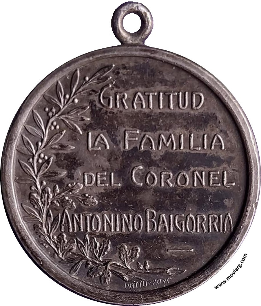 Anverso: 1833 / 1916 Reverso: GRATITUD / LA FAMILIA / DEL CORONEL / ANTONINO BAIGORRIA. Firma: GOTTUZZO Y C. Referencia: | |