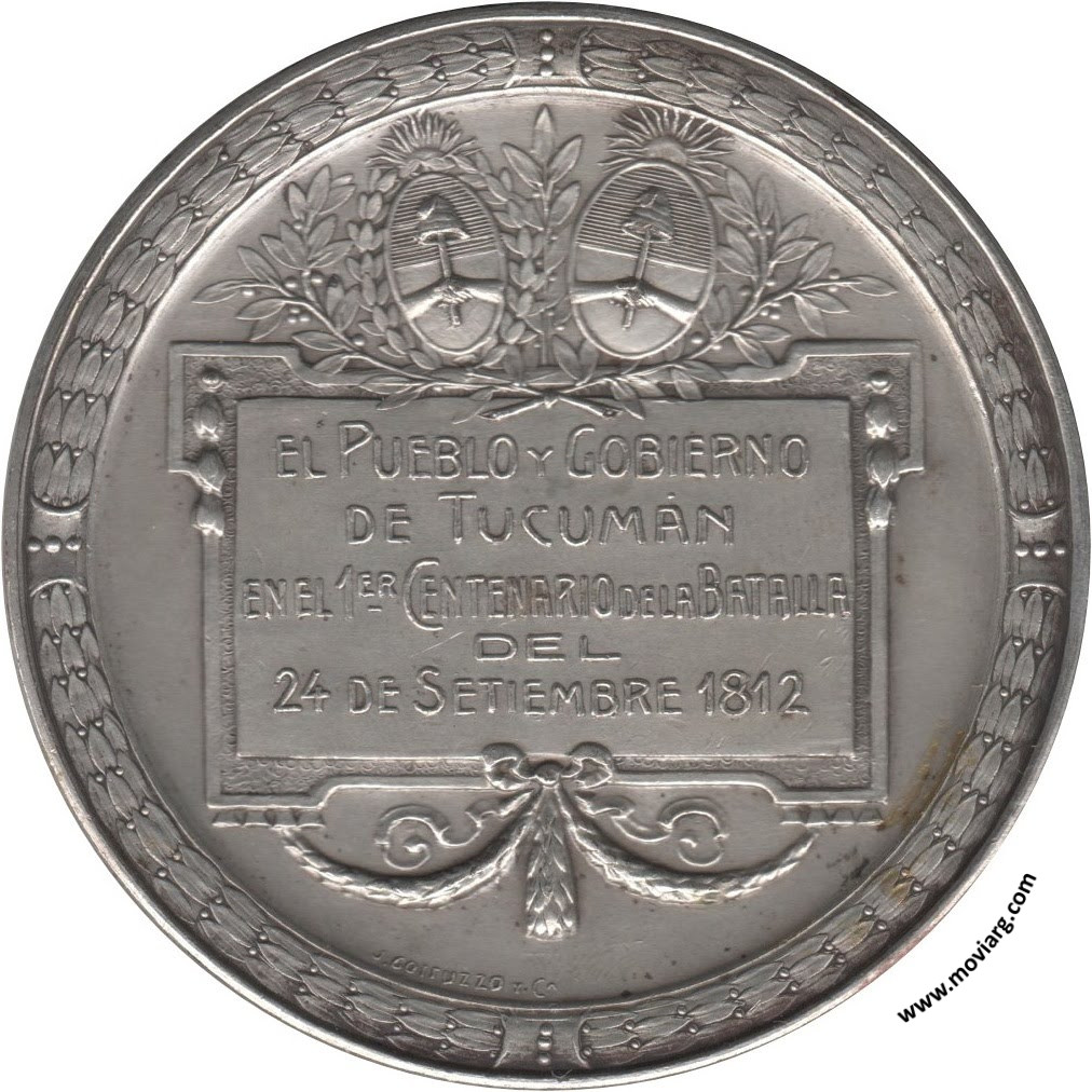 Anverso: GENERAL MANUEL BELGRANO / 1812 - 24 DE SETIEMBRE 1912 Reverso: EL PUEBLO Y GOBIERNO / DE TUCUMÁN / EN EL 1ER. CENTENARIO DE LA BATALLA / DEL / 24 DE SETIEMBRE 1812. Firma: J. GOTTUZZO Y CA. Referencia: | |