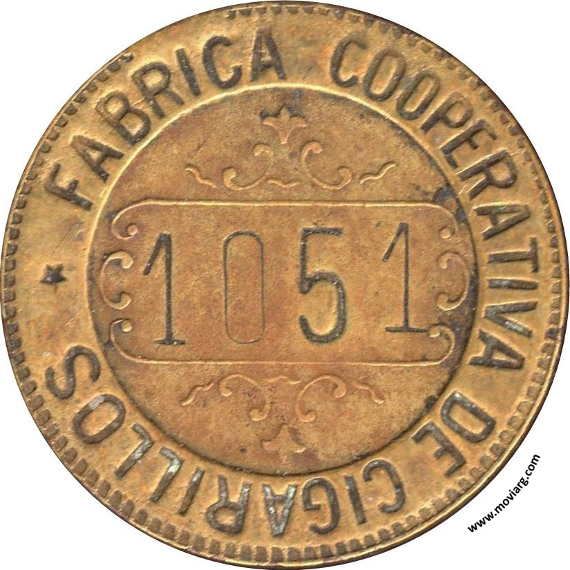 Anverso: VALIDO PARA UN ATADO DE CIGARILLOS (sic) DE 20 CVS. Campo: ORO Reverso: FABRICA COOPERATIVA DE CIGARILLOS (sic). Campo: [ 1051 ] Referencia: | |