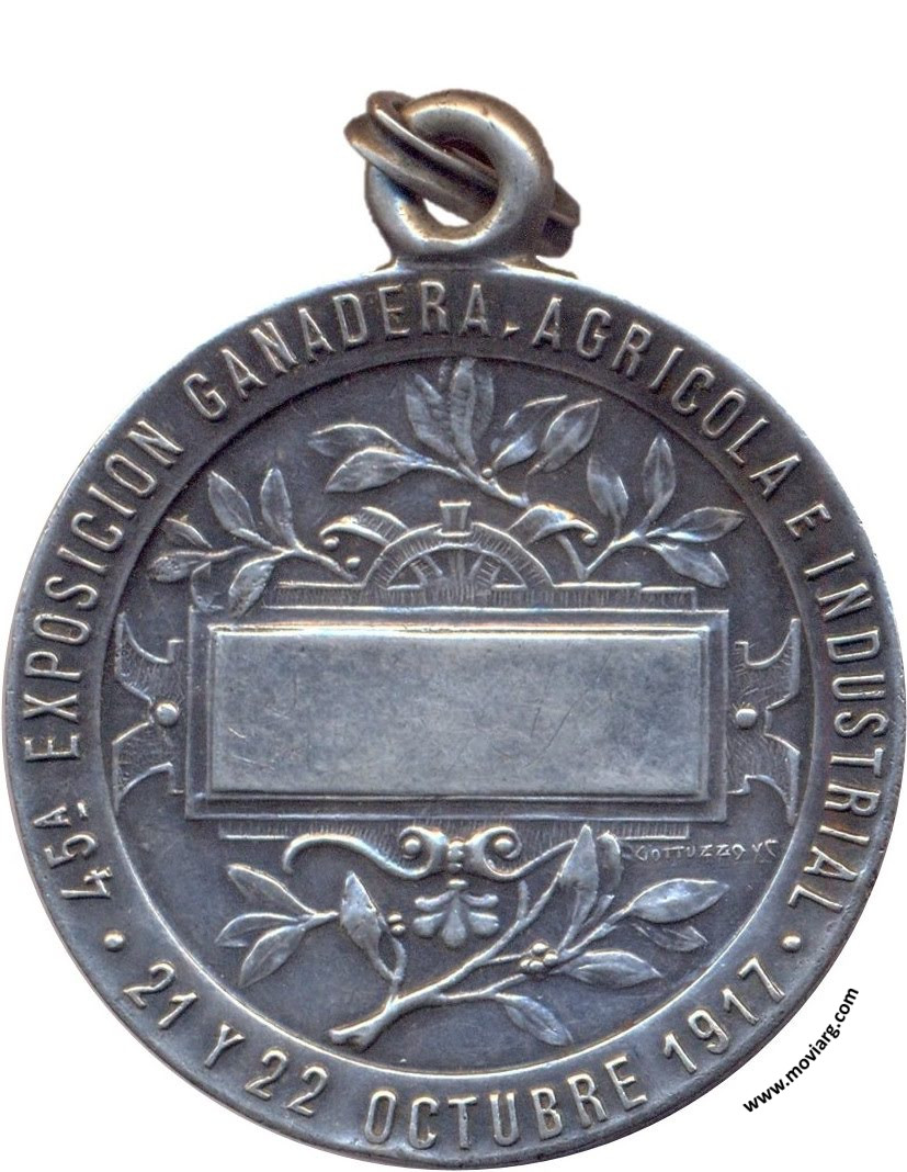 Anverso: SOCIEDAD / RURAL / DE / BALCARCE Reverso: 45A. EXPOSICION GANADERA, AGRICOLA E INDUSTRIAL / 21 Y 22 OCTUBRE 1917. Firma: GOTTUZZO Y C. Referencia: | |