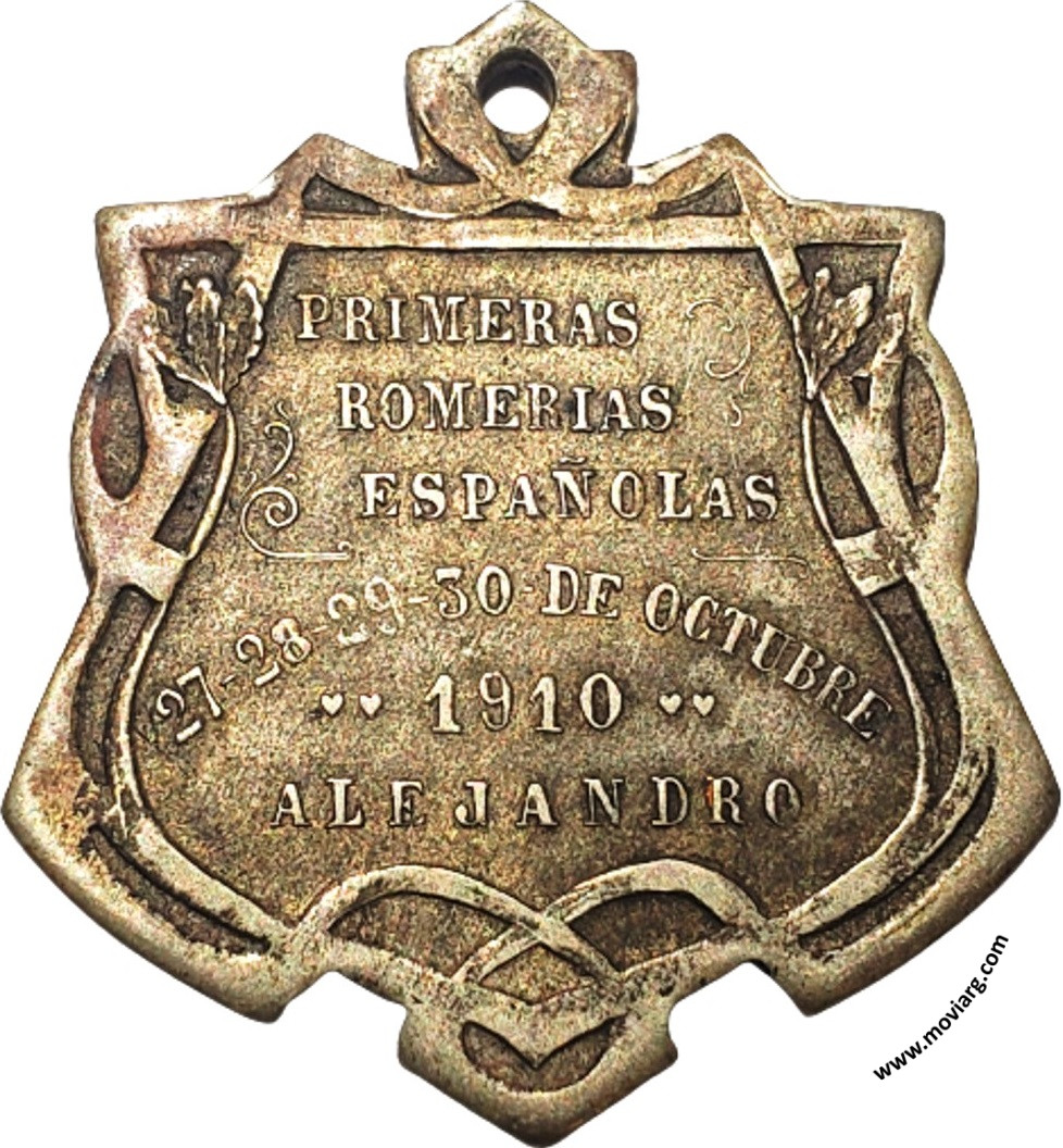 | Año: 1910 Romerías Metal: Plateado - Peso: 10.77gr - Módulo: 31.66x35.09mm - Espesor: 1.89mm - Rotación: 12hrs Grabador: Horta y Cia | |