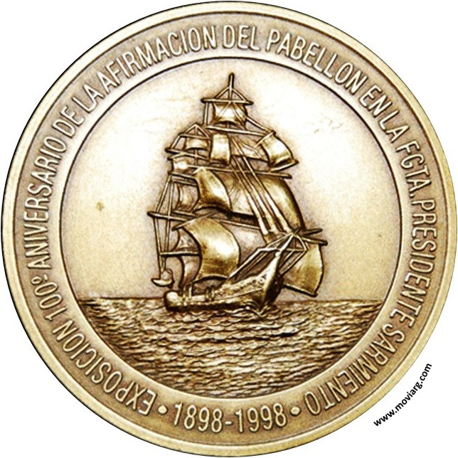 Anverso: EXPOSICION 100° - ANIVERSARIO DE LA AFIRMACION DEL PABELLON EN LA FGTA. PRESIDENTE SARMIENTO / 1898 - 1998 Reverso: INSTITUTO BONAERENSE DE NUMISMATICA Y ANTIGÜEDADES / FUNDADO EN 1872 / SEGUNDA EPOCA / 1934 Referencia: | |