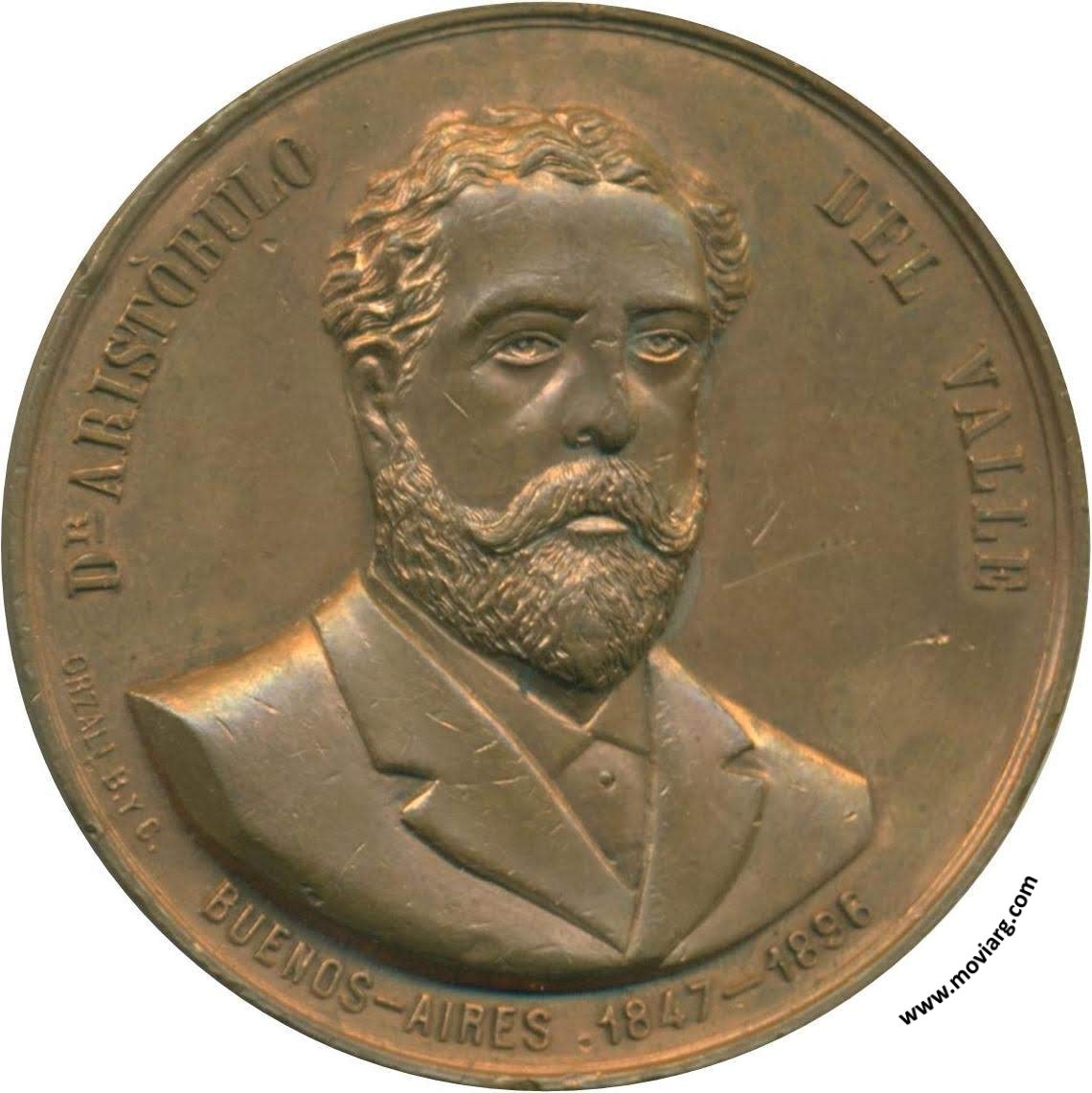 Anverso: DR. ARISTÓBULO DEL VALLE / BUENOS-AIRES 1847-1896. Firma: ORZALI B. Y C. Reverso: MAESTRO / EXIMIO EN LA / CÁTEDRA EN LA TRIBUNA / Y EN EL PARLAMENTO / PARA SUS / CONTEMPORÁNEOS / Y / MODELO DE PATRIOTISMO / PARA / EL PORVENIR Canto: Liso. Humberto Burzio: "Buenos Aires en la medalla" 1981 p36. Referencia: BURZIO-75 | |
