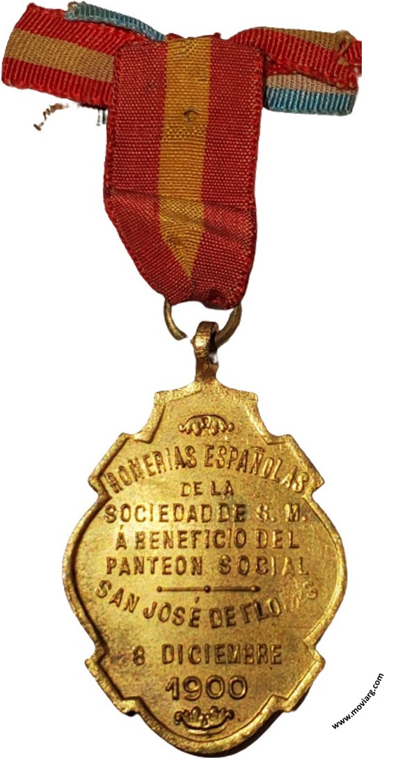 Anverso: Firma: BELLAGAMBA Y ROSSI Reverso: ROMERIAS ESPAÑOLAS / DE LA / SOCIEDAD DE S. M. / Á BENEFICIO DEL / PANTEON SOCIAL / SAN JOSÉ DE FLORES / 8 DICIEMBRE / 1900 Referencia: | |