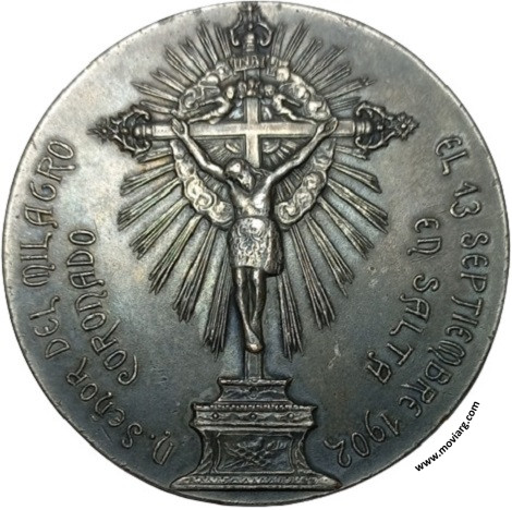 Anverso: N. SEÑORA DEL MILAGRO / CORONADA / EL 13 SEPTIEMBRE 1902 / EN SALTA. Firma: J. GOTTUZZO Reverso: N. SEÑOR DEL MILAGRO / CORONADO / EL 13 SEPTIEMBRE 1902 / EN SALTA. Campo: INRI Referencia: | |