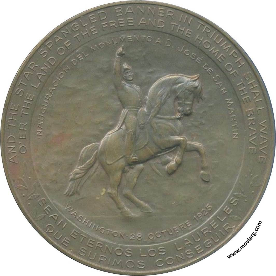 Anverso: Firma: GOTTUZZO Y PIANA Reverso: AND THE STAR SPANGLED BANNER IN TRIUMPH SHALL WAVE / O'ER THE LAND OF THE FREE AND THE HOME OF THE BRAVE / SEAN ETERNOS LOS LAURELES / QUE SUPIMOS CONSEGUIR / INAUGURACIÓN DEL MONUMENTO A D. JOSÉ DE SAN MARTIN / WASHINGTON 28 OCTUBRE 1925 Referencia: | |