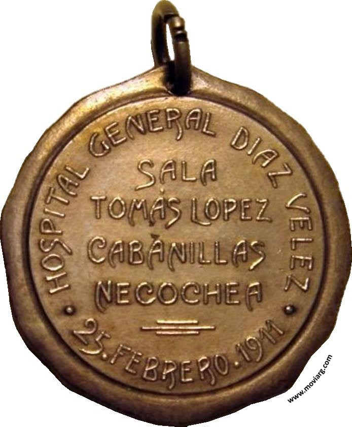 bibliomedicinadigital Anverso: CHARITASReverso: HOSPITAL GENERAL DIAZ VELEZ / SALA / TOMÁS LOPEZ / CABANILLAS / NECOCHEA / 25. FEBRERO. 1911 Referencia: | |