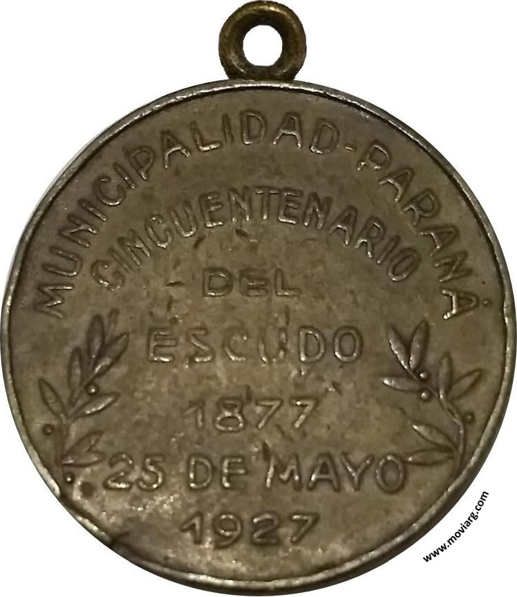 Anverso: Firma: GOTTUZZO Y PIANA Reverso: MUNICIPALIDAD - PARANÁ / CINCUENTENARIO / DEL / ESCUDO / 1877 / 25 DE MAYO / 1927 Referencia: | |