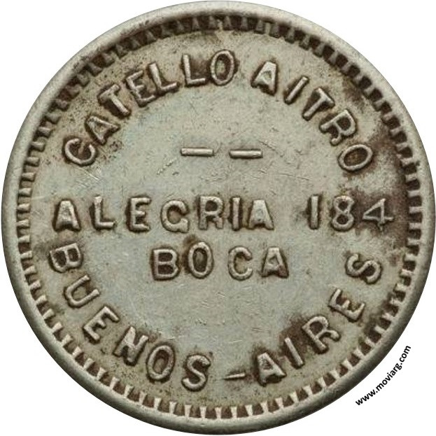 Colección Daniel C. Anverso: CATELLO AITRO / _ _ / ALEGRIA 184 / BOCA / BUENOS - AIRESReverso: MAQUINAS DE PASATIEMPO / 5 / CENTAVOS Referencia: | |