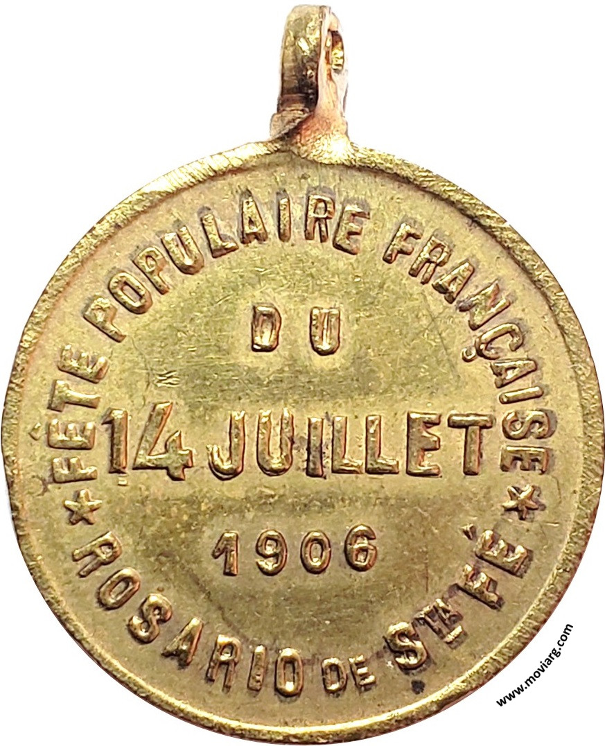 Anverso: RÉPUBLIQUE FRANÇAISE. Firma: LUDOVIC Reverso: FÊTE POPULAIRE FRANÇAISE / ROSARIO DE STA. FÉ / DU / 14 JUILLET / 1906 Referencia: | |
