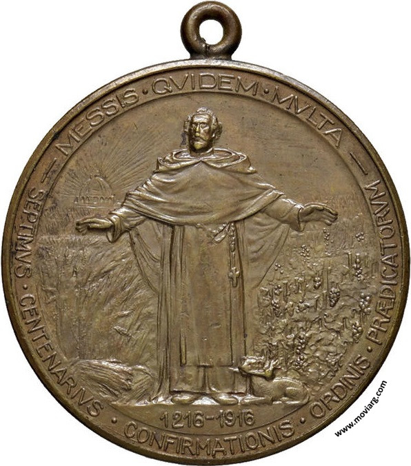 Numismatica Varesi Anverso: MESSIS · QUIDEM · MULTA / SEPTIMUS · CENTENARIUS · CONFIRMATIONIS · ORDINIS · PRAEDICATORUM / 1216 - 1916Reverso: · TUS · HIJOS · SERAN · LOS · CAMPEONES · DE · LA · FE · Y · VERDADERAS · LUMBRERAS · DEL · MUNDO - HONORIO · III · PONT · MAX ·. Firma: J. G. Y C. Referencia: | |