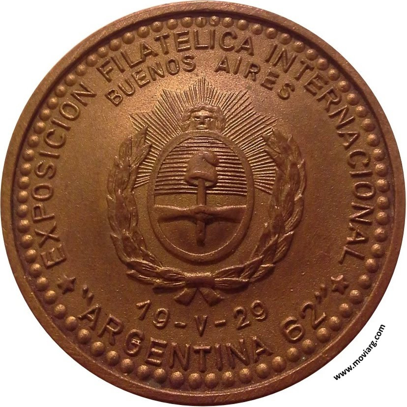 Anverso: EXPOSICION FILATELICA INTERNACIONAL / BUENOS AIRES / " ARGENTINA 62 " / 19 - V - 29 Reverso: FEDERACION ARGENTINA DE ENTIDADES FILATELICAS / F.A.E.F. Referencia: | |