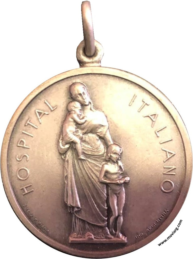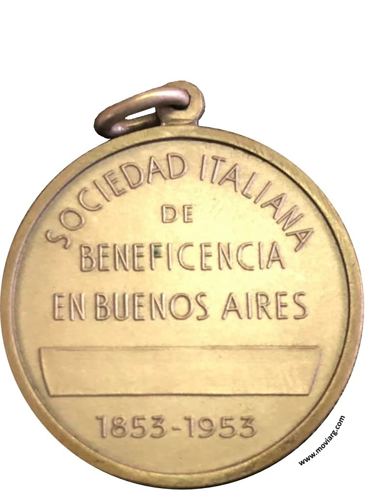 fb - J.M.L. Anverso: HOSPITAL ITALIANO. Firma: SUC. J. F. PIANA / IND. ARGENTINAReverso: SOCIEDAD ITALIANA / DE / BENEFICENCIA / EN BUENOS AIRES / 1853 - 1953 Referencia: | |