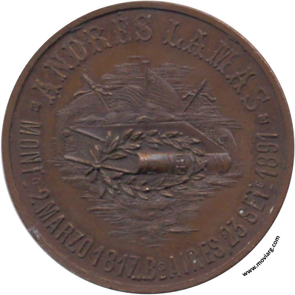 Anverso: ANDRÉS LAMAS / MONTO. 2 MARZO 1817 BS. AIRES 23 SETE. 1891 Reverso: SUS AMIGOS Y ADMIRADORES / DEL RIO DE LA PLATA Referencia: | |
