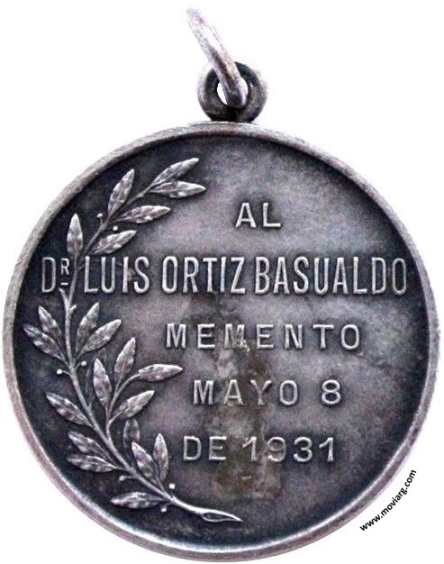 Anverso: PATRONATO DE LA INFANCIA / MAXIMA DEBETUR PUERO REVERENTIA. Firma: CONSTANTE ROSSI Reverso: AL / DR. LUIS ORTIZ BASUALDO / MEMENTO / MAYO 8 / DE 1931 Canto: Humberto Burzio: "Buenos Aires en la medalla" 1981 p1024. Referencia: BURZIO-3249 | |