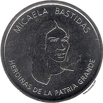 Anverso: MICAELA BASTIDAS / HEROINAS DE LA PATRIA GRANDE Reverso: S. E. CASA DE MONEDA / REPÚBLICA ARGENTINA Referencia: | |