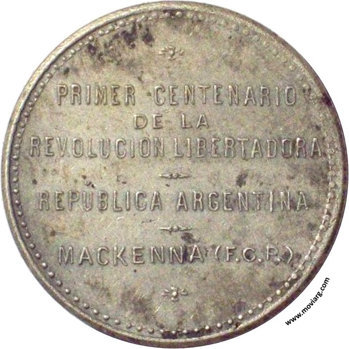 Anverso: OID / MORTALES / EL GRITO / SAGRADO... Reverso: PRIMER CENTENARIO / DE LA / REVOLUCION LIBERTADORA / REPUBLICA ARGENTINA / MACKENNA ( F. C. P. ) Referencia: | |