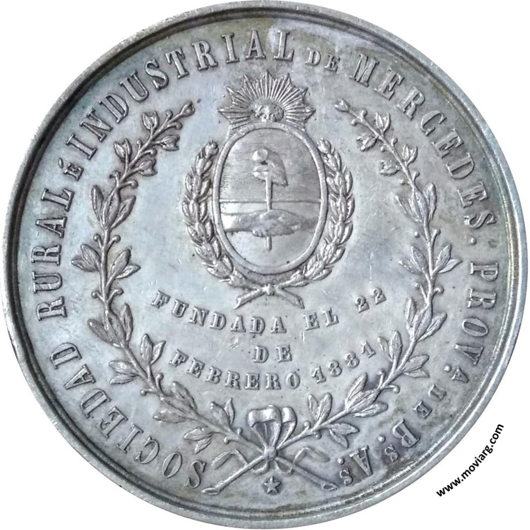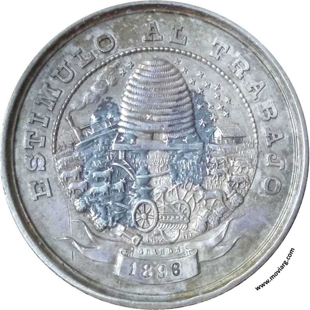 Anverso: ESTIMULO AL TRABAJO / [ 1898 ]. Firma: GRANDE Reverso: SOCIEDAD RURAL É INDUSTRIAL DE MERCEDES. PROVA. DE BS. AS. / FUNDADA EL 22 / DE / FEBRERO 1881 Referencia: ROSA-369/192 | |