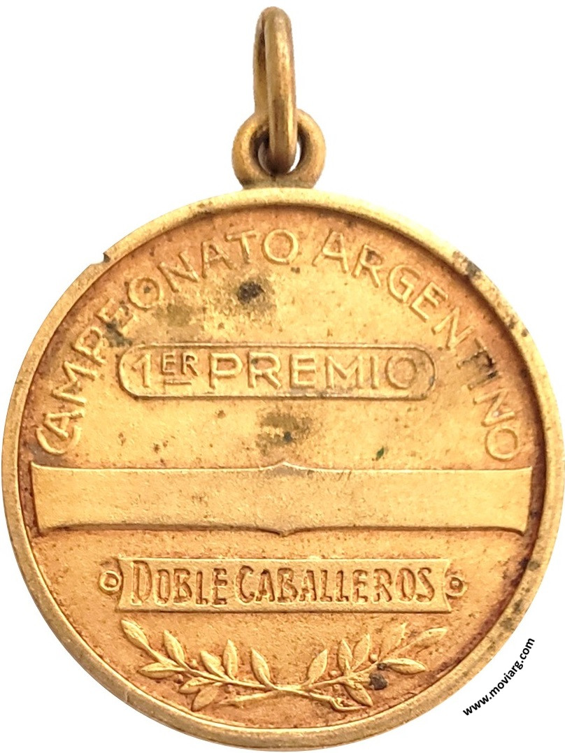 Anverso: TENNIS CLUB ARGENTINO / 1943. Campo: T. C. A. Reverso: CAMPEONATO ARGENTINO / 1ER. PREMIO / [ DOBLE CABALLEROS ] Referencia: | |