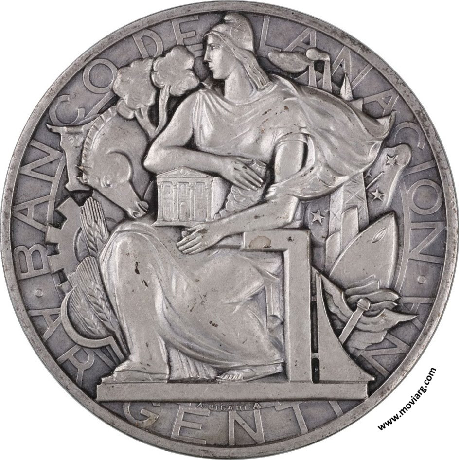 Anverso: BANCO DE / LA NACION / ARGENTINA. Firma: A. BIGATTI Reverso: (???) Referencia: | |