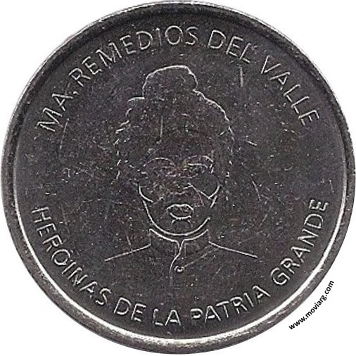 Anverso: MA. REMEDIOS DEL VALLE / HEROINAS DE LA PATRIA GRANDE Reverso: S. E. CASA DE MONEDA / REPÚBLICA ARGENTINA Referencia: | |