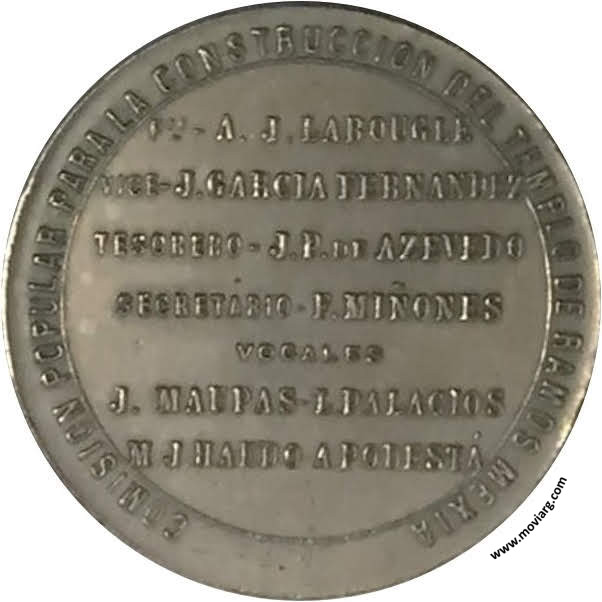 Anverso: TEMPLO DE RAMOS MEXIA / 27 DE DICIEMBRE 1900 Reverso: COMISION POPULAR PARA LA CONSTRUCCION DEL TEMPLO DE RAMOS MEXIA / PTE. - A. J. LABOUGLE / VICE - J. GARCIA FERNANDEZ / TESORERO - J. P. DE AZEVEDO / SECRETARIO - F. MIÑONES / VOCALES / J. MAUPAS - L. PALACIOS / M. J. HAEDO - A. PODESTÁ Referencia: | |