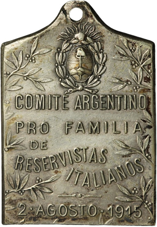 Anverso: Reverso: COMITÉ ARGENTINO / PRO FAMILIA / DE / RESERVISTAS / ITALIANOS / 2 · AGOSTO · 1915 Referencia: | |