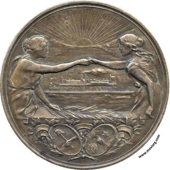 | Año: 1908 Ferrocarriles Metal: Cobre - Peso: 72gr - Módulo: 56mm Grabador: Juan Gottuzzo | |
