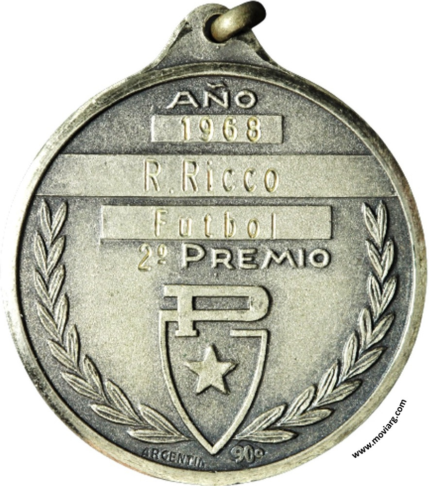 Anverso: CENTRO SOCIAL Y DEPORTIVO / PIRELLI. Firma: PERRI Y CIA (?) Reverso: AÑO / [ 1968 ] / [ P. RICCO ] / [ FUTBOL ] / [ 2° ] PREMIO. Exergo: [ ARGENTINA ] [ <900> ] Referencia: | |