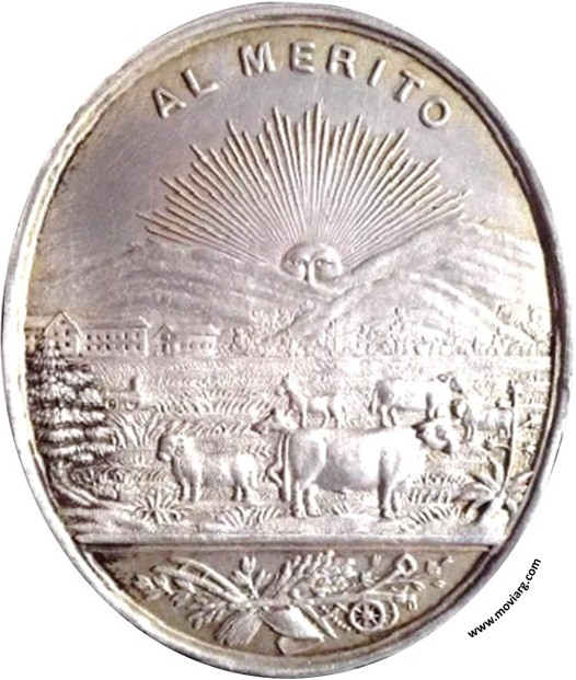 Anverso: AL MERITO Reverso: SOCIEDAD RURAL DEL AZUL / SETIEMBRE 1894. Campo: GRAN PREMIO. Firma: GRANDE Referencia: | |