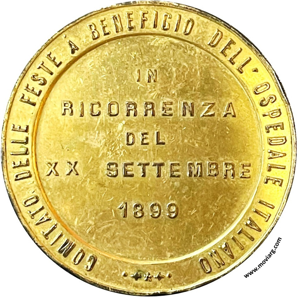 Anverso: OSPEDALE ITALIANO / BUENOS AIRES Reverso: COMITATO DELLE FESTE Á BENEFICIO DELL' OSPEDALE ITALIANO / IN / RICORRENZA / DEL / XX SETTEMBRE / 1899 Referencia: | |