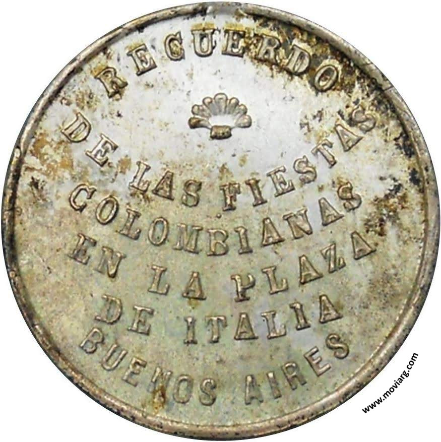 Anverso: RECUERDO / DE LAS FIESTAS / COLOMBIANAS / EN LA PLAZA / DE ITALIA / BUENOS AIRES Reverso: HONOR Á CRISTOBAL COLON / DIOS / INSPIRÓ SU GENIO / LA FÉ ADELANTÓ / SU ESPIRITU / 1492-1892 Referencia: FERRARI-207 (RG) | |
